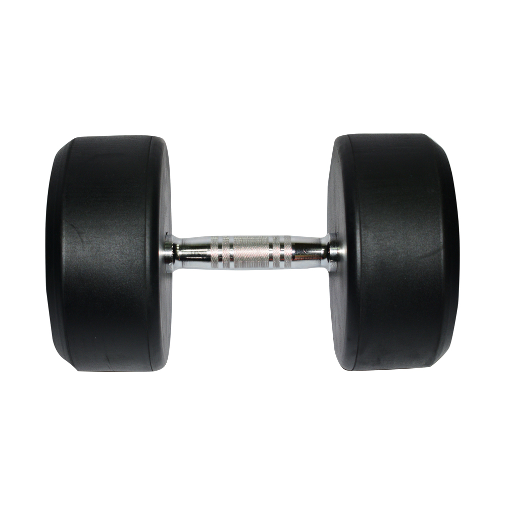Mancuerna en hierro fundido y caucho inyectado,con eje en acero cromado y grafilado de 60 Lb.